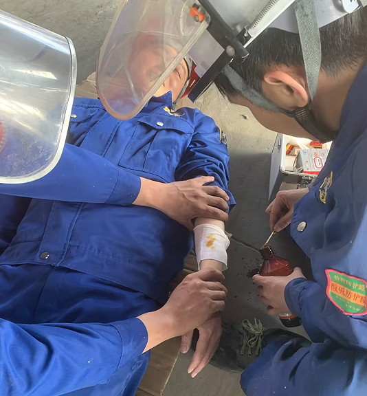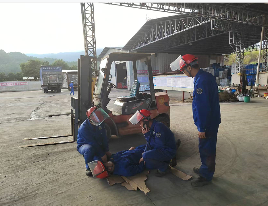 叉車司機(jī)王根立即停止作業(yè),并大喊:“撞人了,撞人了”,周邊同事聽到后,迅速過(guò)來(lái)幫助受傷人員躺平,并上報(bào)車間主任,車間主任接報(bào)后,立即組織救援人員趕赴現(xiàn)場(chǎng),查看受傷人員傷勢(shì)情況,查看到傷勢(shì)比較嚴(yán)重,立即組織人員進(jìn)行簡(jiǎn)單包扎處理,簡(jiǎn)單處理后,使用擔(dān)架抬傷員到公司車輛并送到醫(yī)院就診。