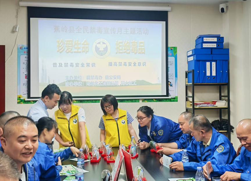 為切實(shí)提高廣大職工識(shí)毒、防毒、拒毒意識(shí),增強(qiáng)廣大職工自覺(jué)抵制毒品的能力,結(jié)合今年全民禁毒宣傳月的“健康人生、綠色無(wú)毒”的主題,6月10日,蕉嶺縣禁毒辦、蕉嶺縣公安局在海龍化工廠區(qū)開展“珍愛(ài)生命,拒絕毒品”為主題的禁毒宣傳活動(dòng)。
