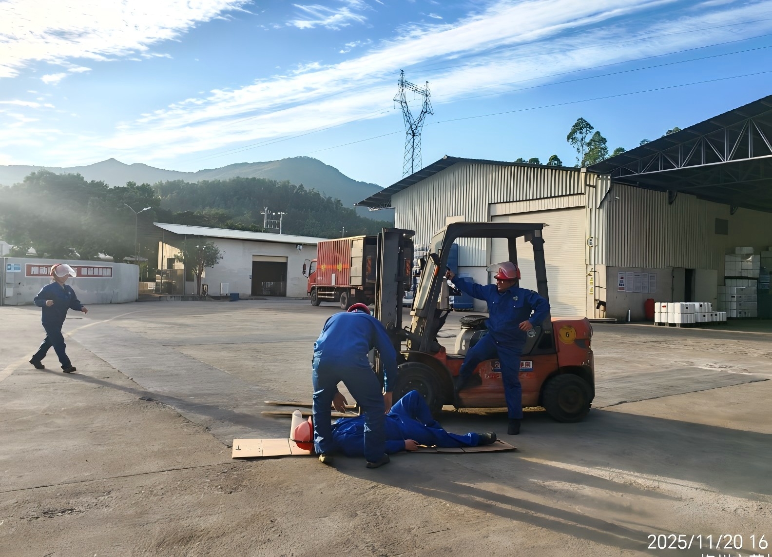碰撞發(fā)生后,叉車駕駛員立即停止作業(yè),并大喊:“撞人了,撞人了”,周邊正在作業(yè)的同事聽到呼救后,立刻前往查看情況并幫助傷者扶下躺平,隨后立刻向車間主任匯報情況。